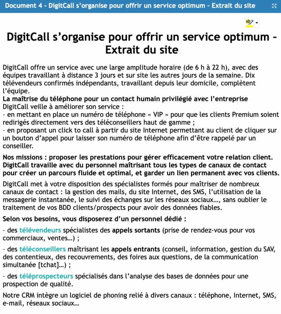 3. Montrez comment l’organisation de DigitCall peut améliorer le contact client de Choco d’Or. Identifiez le métier du personnel de DigitCall à mobiliser pour l’action de prospection.