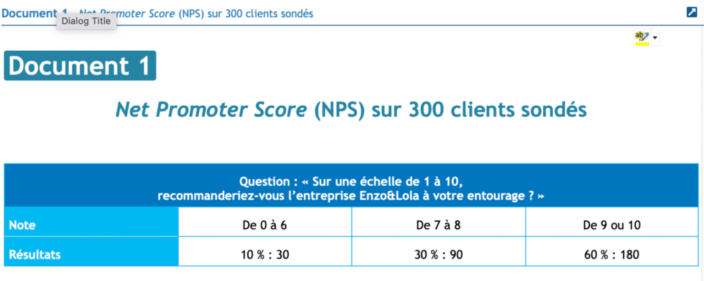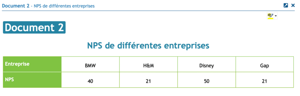 2. À l’aide du document 1, calculez le NPS et comparez-le à celui d’autres entreprises (document 2). Analysez vos résultats.