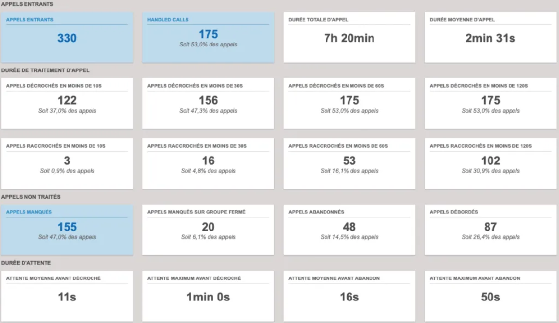 Analysez ces données d’un groupe d’appel. NB : Une réponse à une question comme celle-ci doit comporter 3 à 4 KPI détaillés et mettre en lumière les points d’améliorations de la structure.