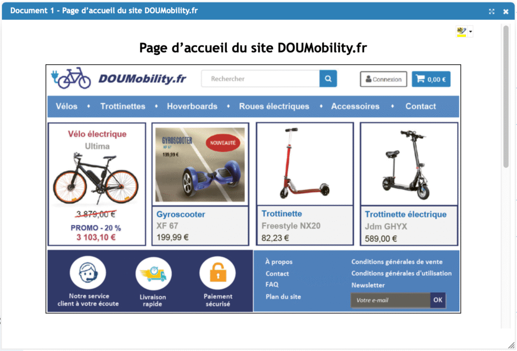 1. Identifiez l’offre proposée par DOUMobility.fr et repérez les éléments de la page d’accueil visant à faciliter le processus d’achat.