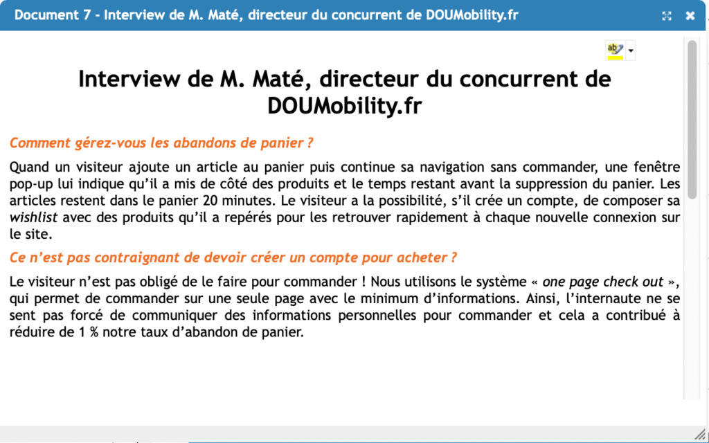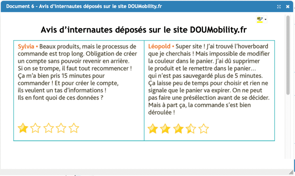 Vous êtes recruté(e) par Ana Olton en tant que responsable commercial(e). Après avoir étudié l’offre proposée par DOUMobility.fr, vous devez analyser les résultats du site et trouver des solutions pour améliorer le processus d’achat en ligne.